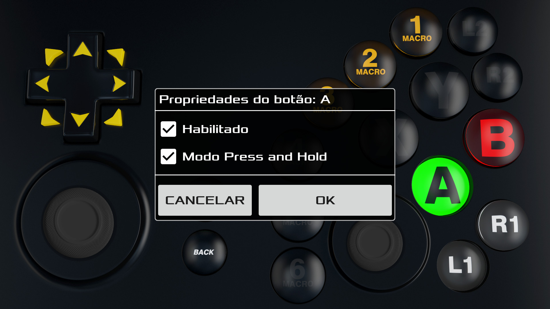 - Skin 3D com estética e posicionamento de botões similares ao de um controle real.